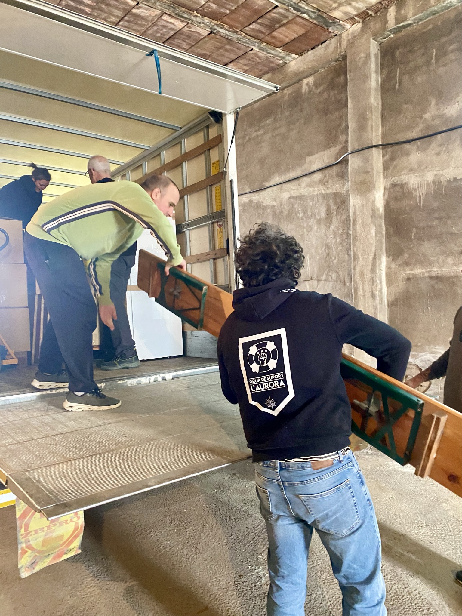 Aquesta setmana un equip de L'Aurora va estar treballant per enllestir un camió amb menjar, i diversos materials amb destinació a