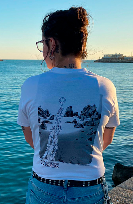 Noves samarretes de L’Aurora amb la Il·lustració creada Paco Giménez en col·laboració amb Amnistia Internacional de la Comunitat Valenciana per guardonar l’acció de L’Aurora – Grup de Suport en dedicació a la defensa dels Drets Humans.
